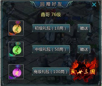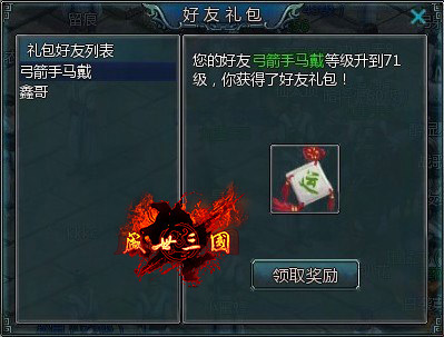 大家都知道没有朋友的人是可怜的,而有朋友的人是幸福的。朋友会因为你快乐而感到高兴,也会因你伤心而感到难过。朋友的力量是无穷的,就拿陪游《盛世三国》来说吧。在游戏里面无论是你认识的,还是你不认识的好友,只要他们每升一级就会送出一个礼包,别小看这个礼包哦!积少成多,增加你的财富。同时你也可以回赠你的好友。